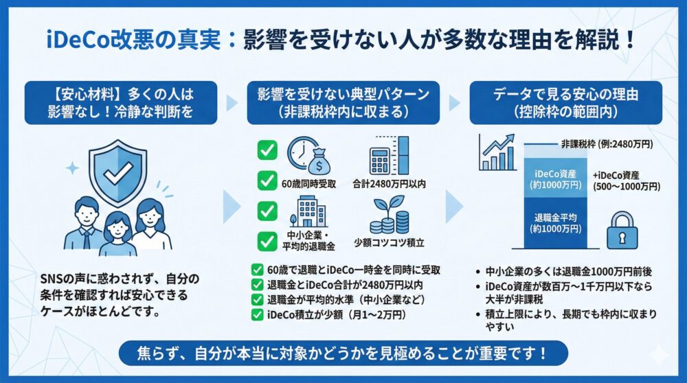 【影響を受けない人】退職金/iDeCoが控除内に収まる典型パターン✅