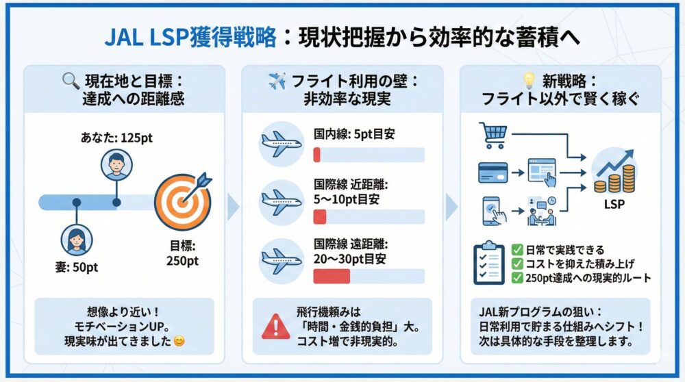 JALカードや固定費を活用してLSPを最短距離で積み上げる流れを解説します。