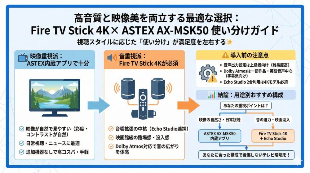 💡【結論】映像はASTEX/音はFire TVで満足度を高める使い分け術