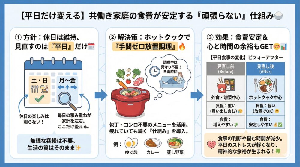 【平日だけ変える】共働き家庭の食費が安定する理由と続く仕組みまとめ🍚