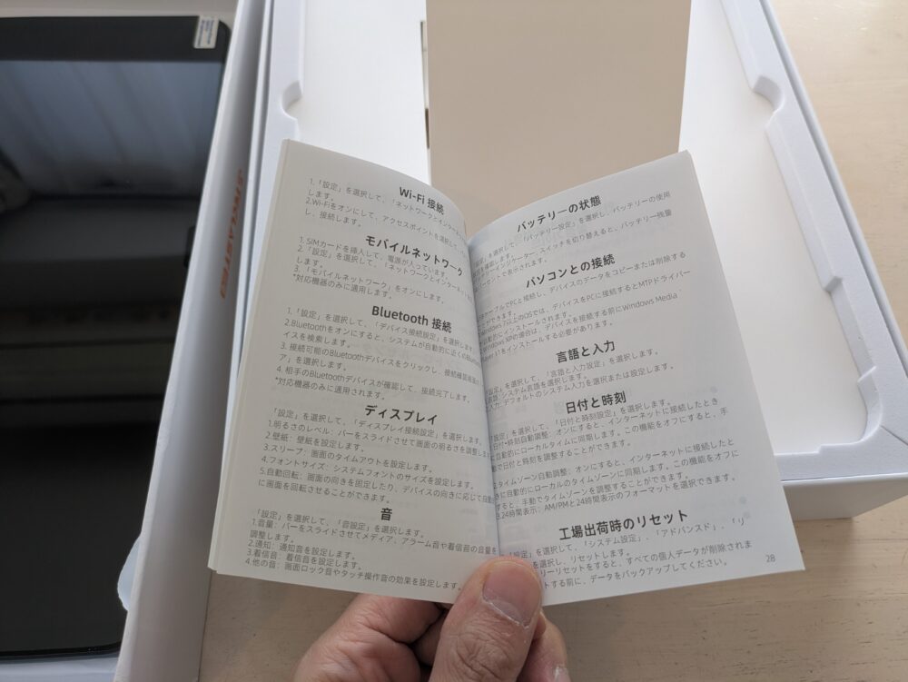 格安タブレットでは珍しいほど対応が丁寧で、この時点でかなりポイントが高い印象です。