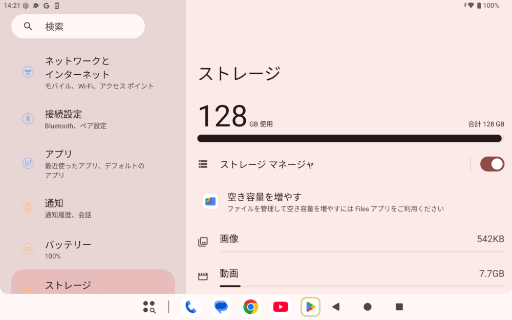 ◉ ストレージは128GBまで実際に書き込み可能