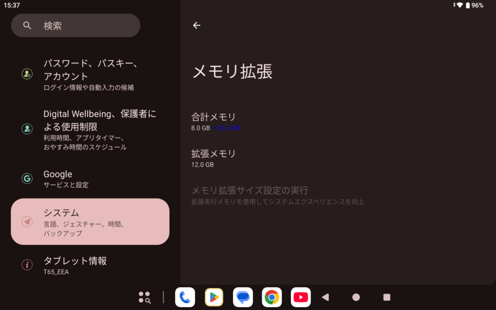 なお、拡張メモリは増やすことはできませんが、減らす設定は可能です。