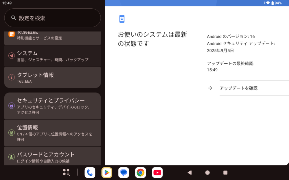 この時点でも十分に新しいバージョンではありますが、もしAndroid 16に対応していればさらに嬉しいところです。