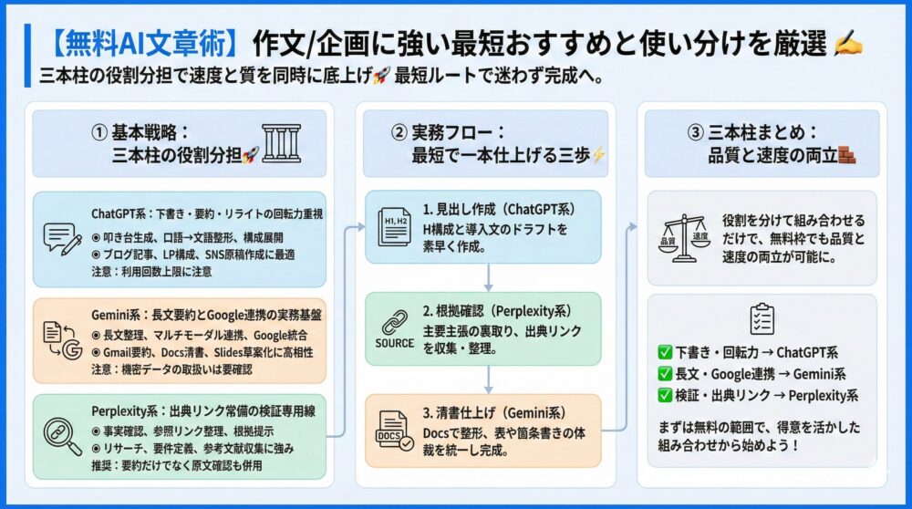 【無料AI文章術】作文/企画に強い最短おすすめと使い分けを厳選 ✍️無料AI