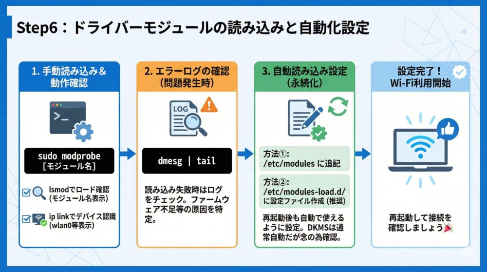 sudo rfkill unblock all🔁 カーネルアップデート後のWi-Fiドライバー再インストールが必要な理由